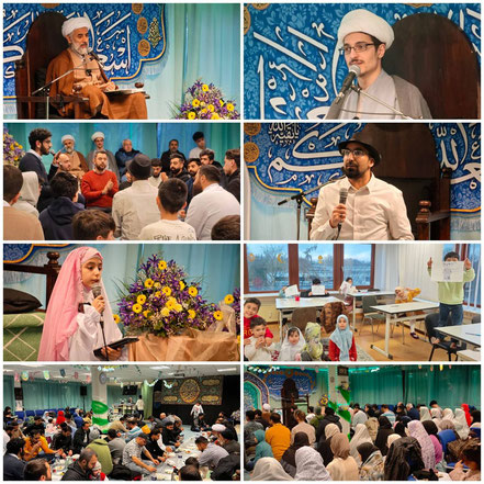 Der Tag begann mit der rezitation des Quran, gefolgt von der Ansprache von den islamischen Theologen Hujat ul Islam Dr. Torabi. Die Ansprache betonte die Bedeutung des Ereignisses von Ghadir Khumm, als der Prophet Muhammad (saw) Imam Ali (as) als seinen Nachfolger ernannte.